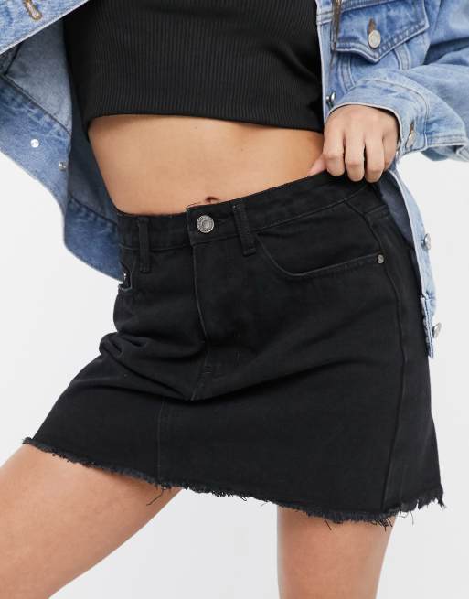 Missguided petite denim 2025 mini skirt in black